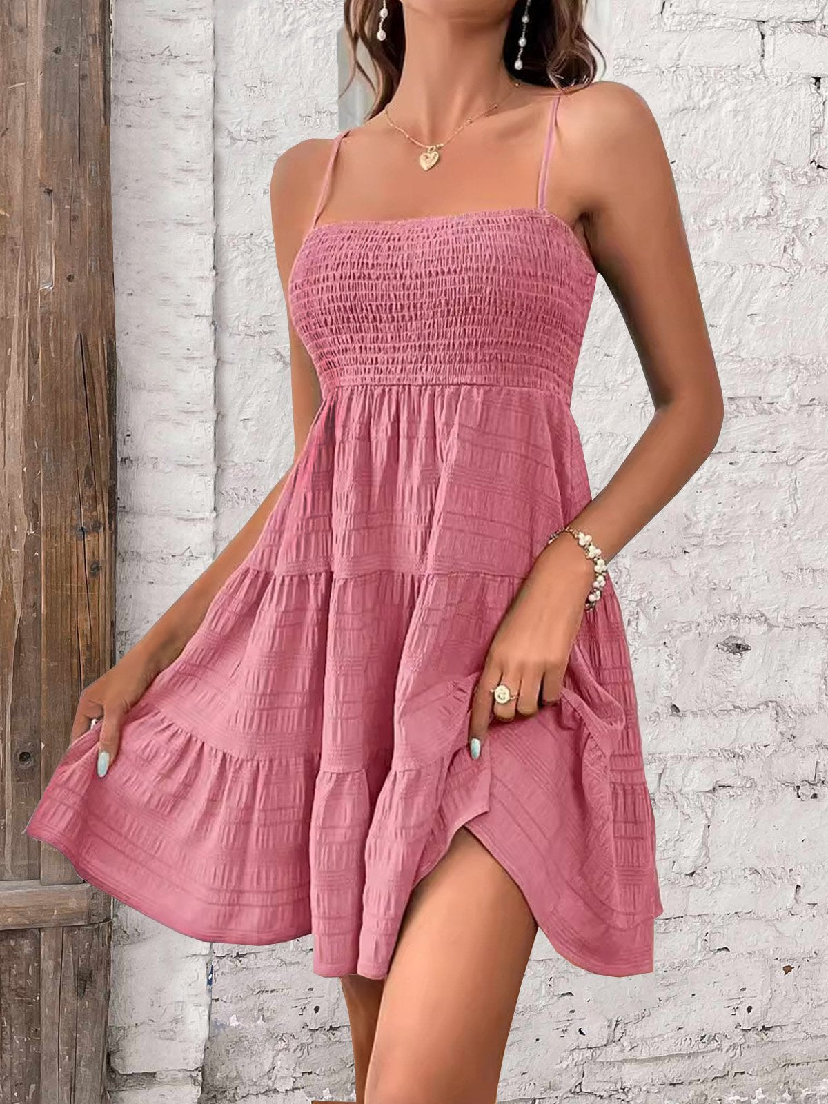 Casual Gallus Spaghetti Plain Loose Short Dress