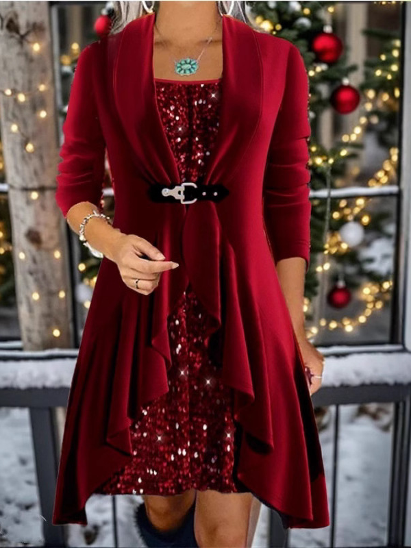 Casual Long Sleeve Crew Neck Christmas Short Dress