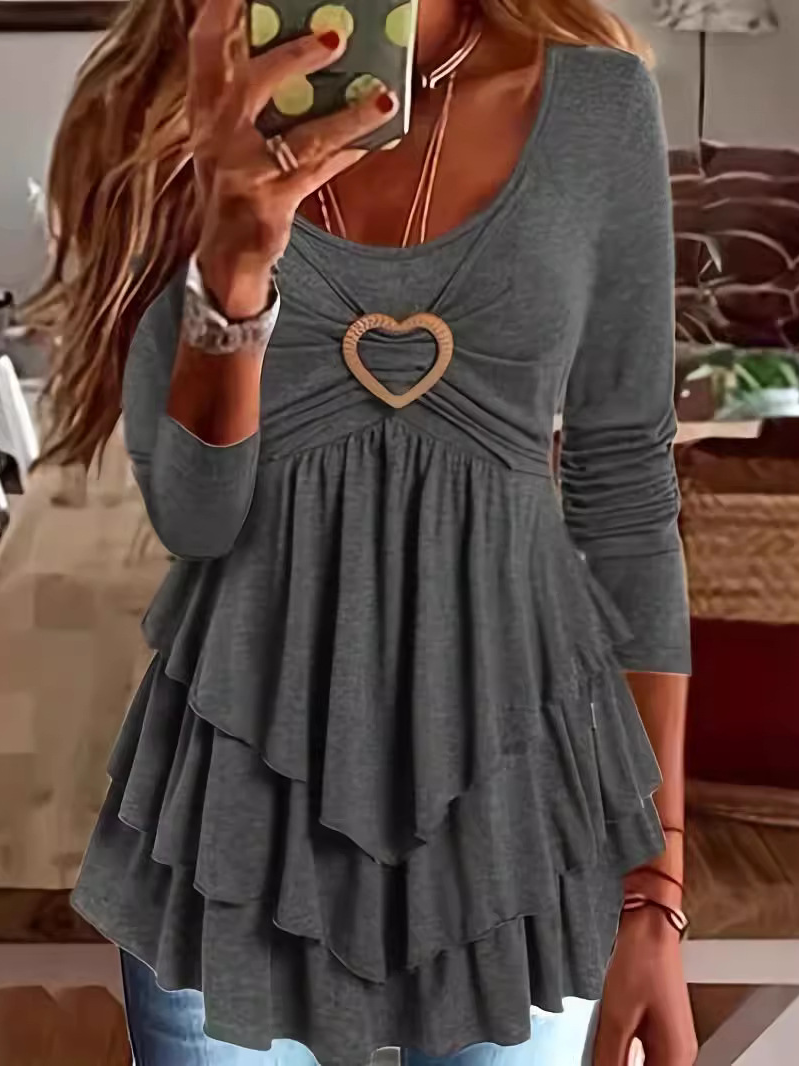 Casual Long Sleeve Crew Neck Plain Loose Regular Blouse