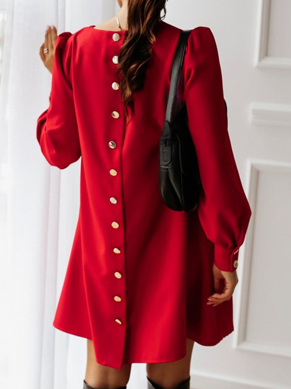 Casual Long Sleeve Crew Neck Plain Loose Short Dress
