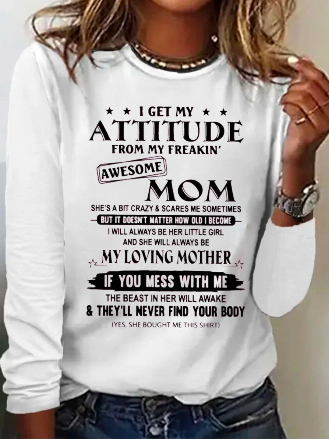 Casual Long Sleeve Crew Neck Text Letters Loose Regular T-Shirt