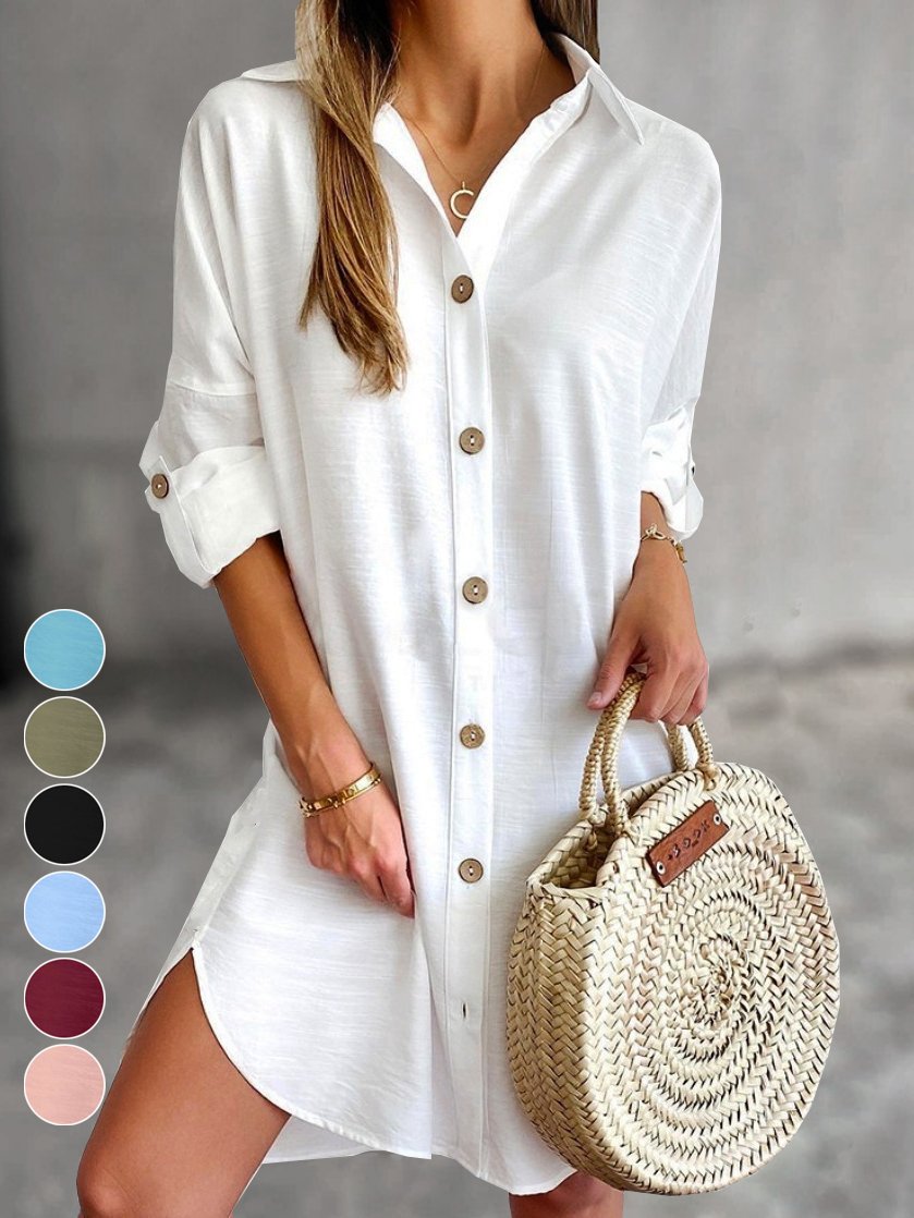 Casual Long Sleeve V Neck Plain Loose Midi Dress