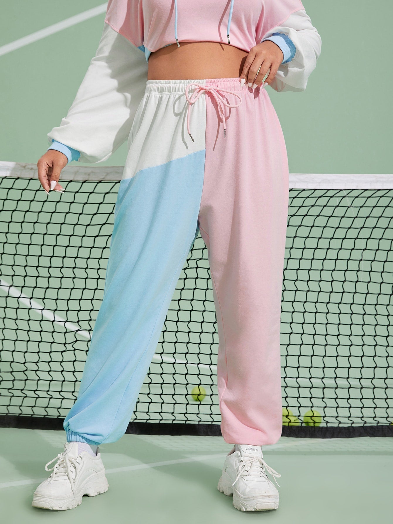 Colorblock Drawstring High Waist Long Plus Size Sweatpants