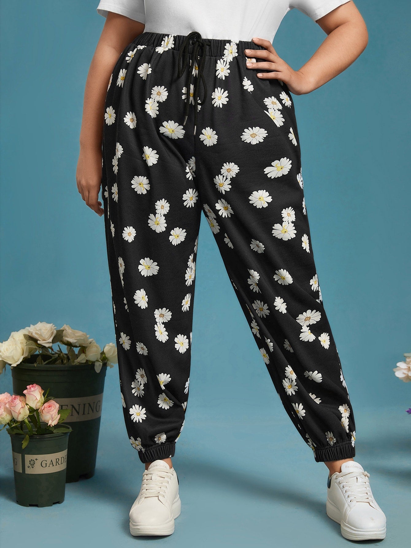 Floral Drawstring High Waist Long Plus Size Sweatpants