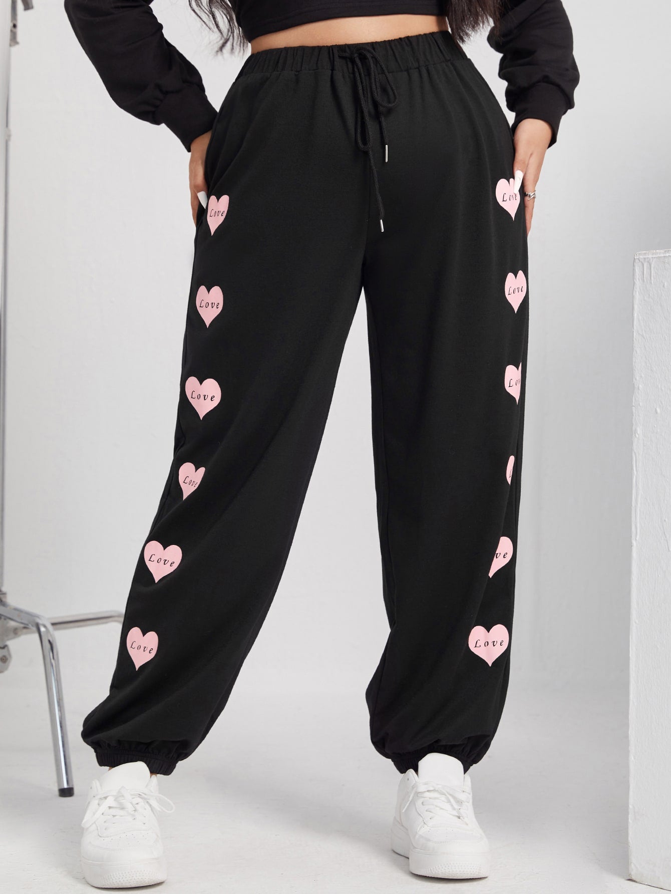 Letter Drawstring Natural Long Plus Size Sweatpants