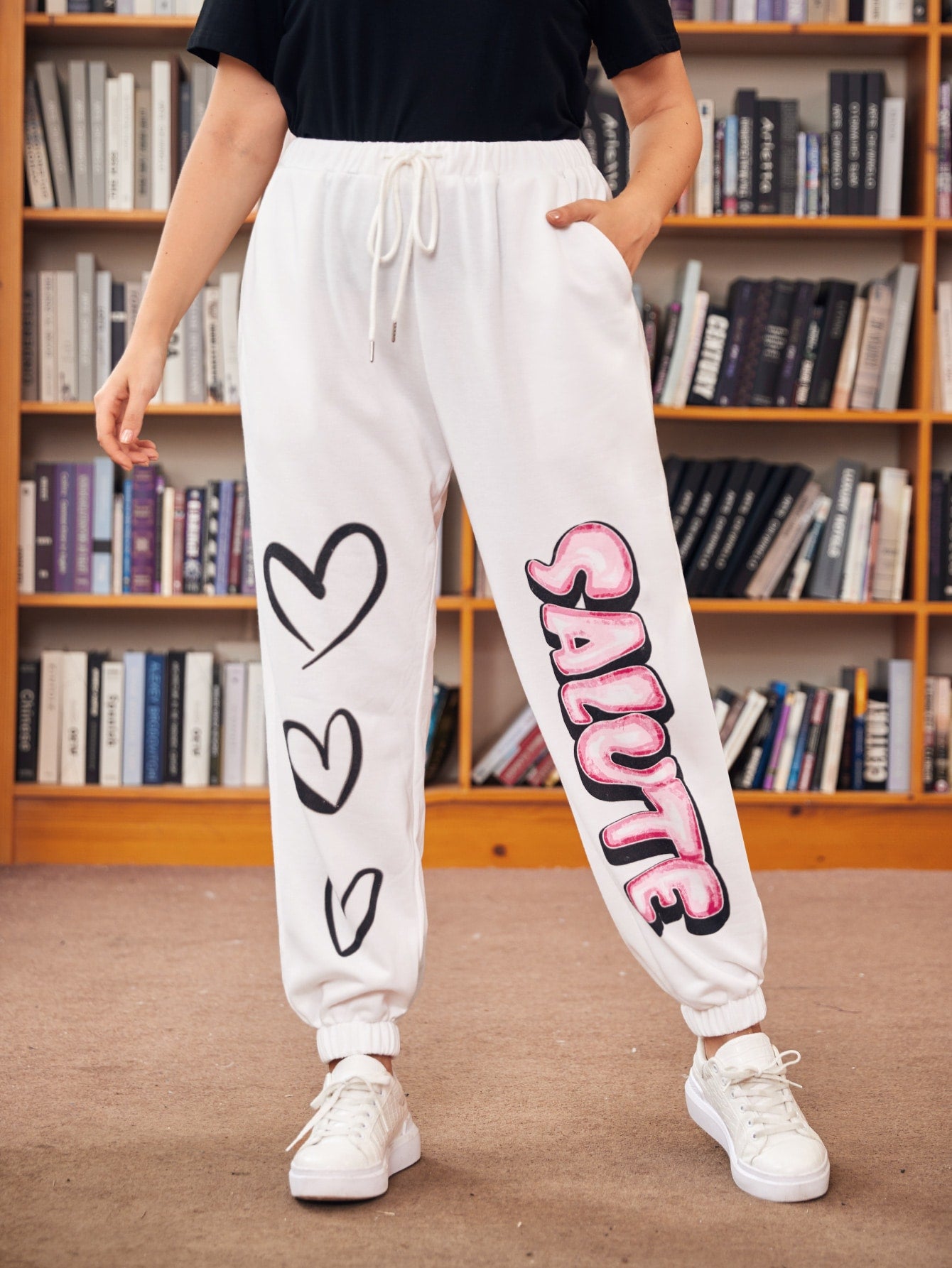 Letter Drawstring Natural Long Plus Size Sweatpants