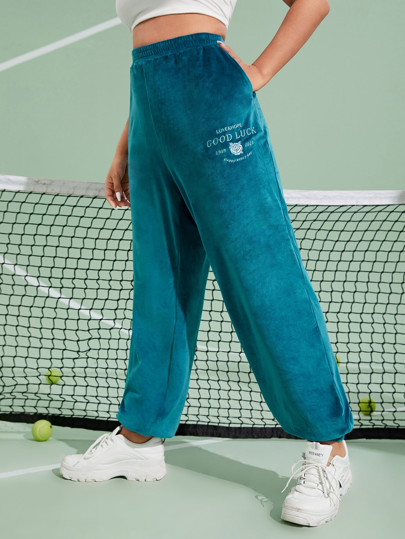 Letter Embroidery High Waist Long Plus Size Sweatpants