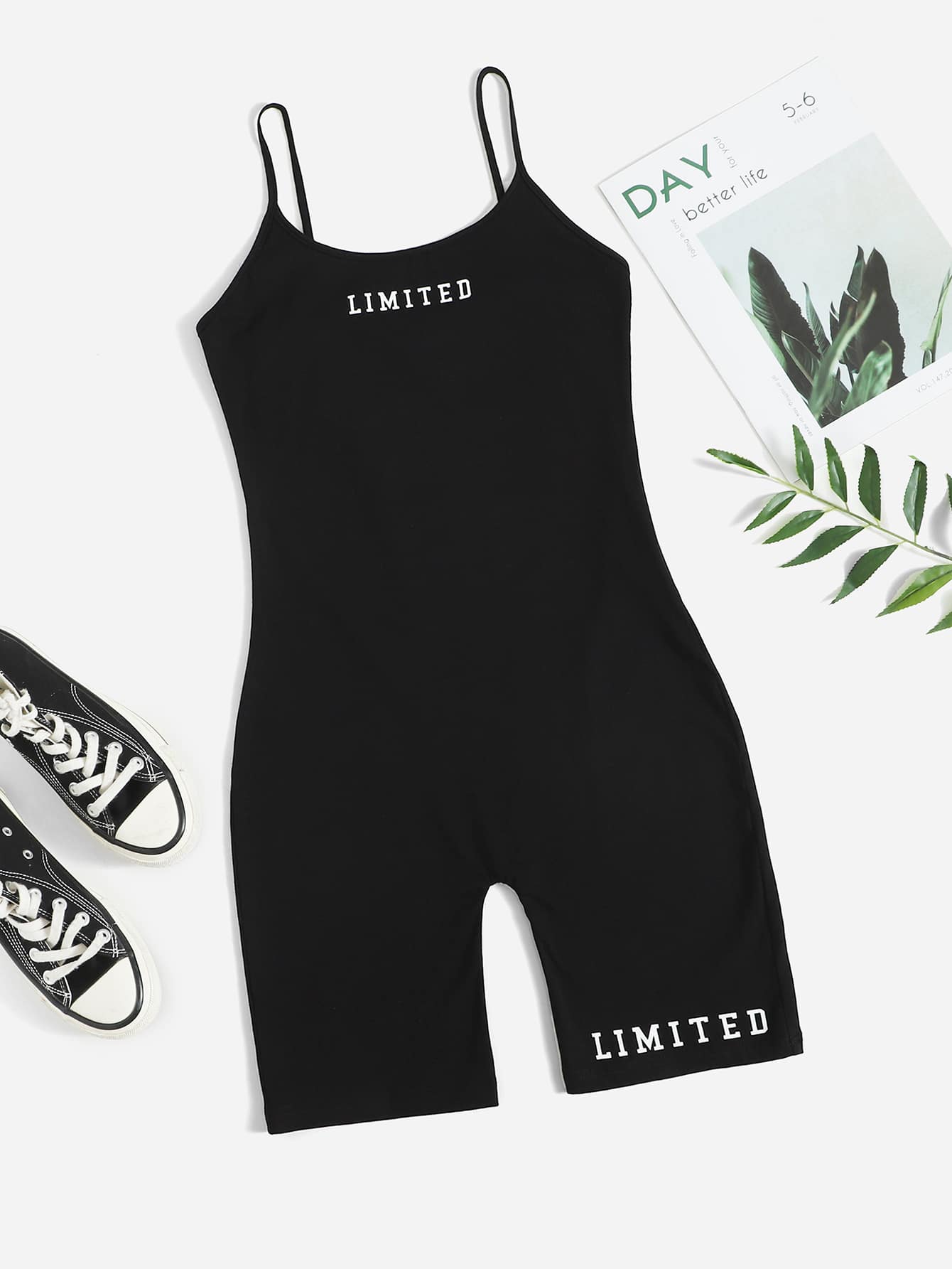 Letter Sleeveless Spaghetti Strap Short Women Unitards