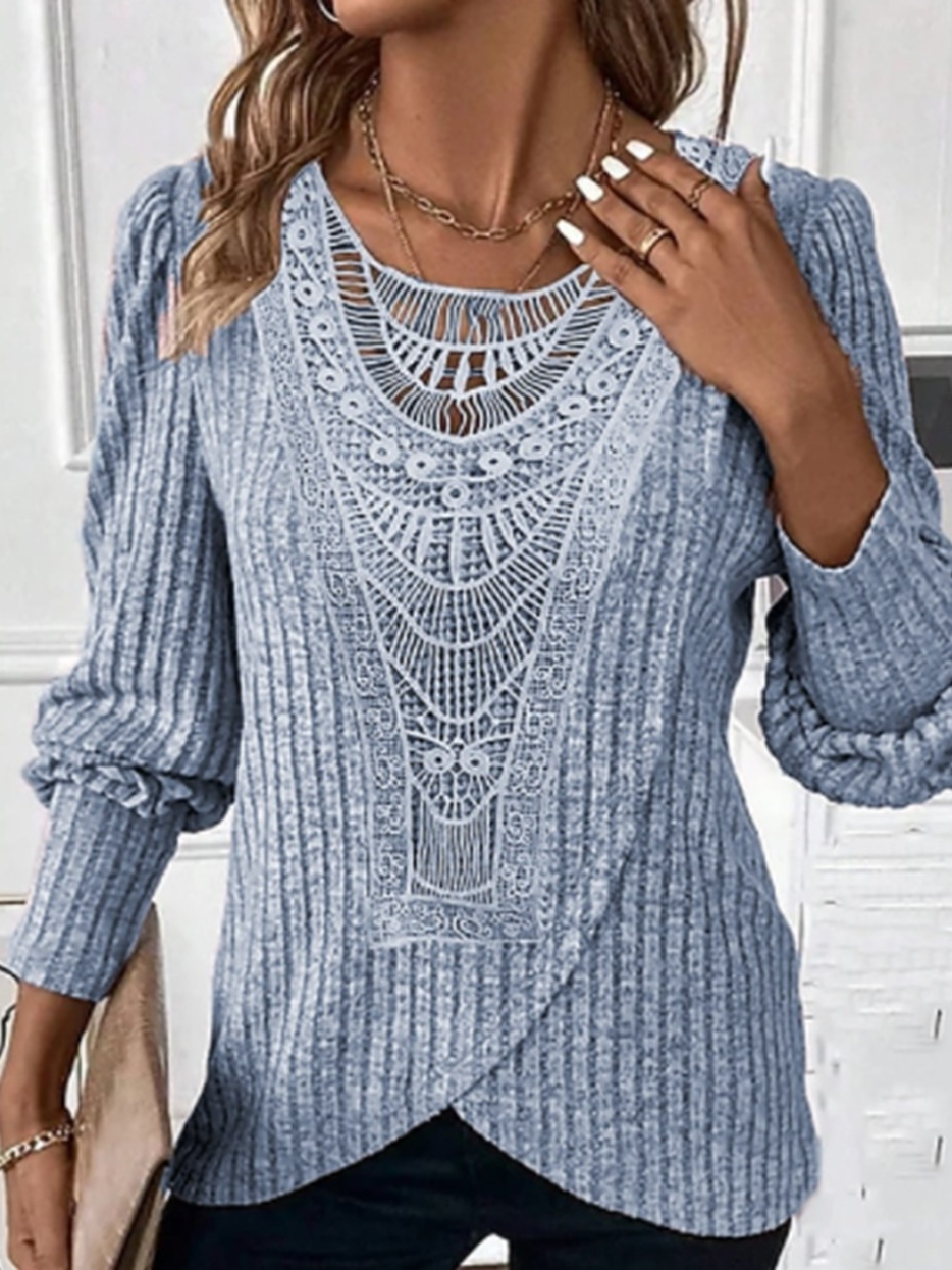Long Sleeve Crew Neck Plain Casual Regular Blouse