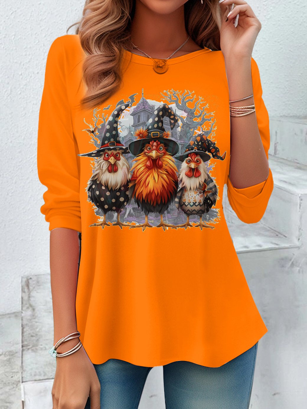 Loose Long Sleeve Crew Neck Halloween Vintage Regular Blouse