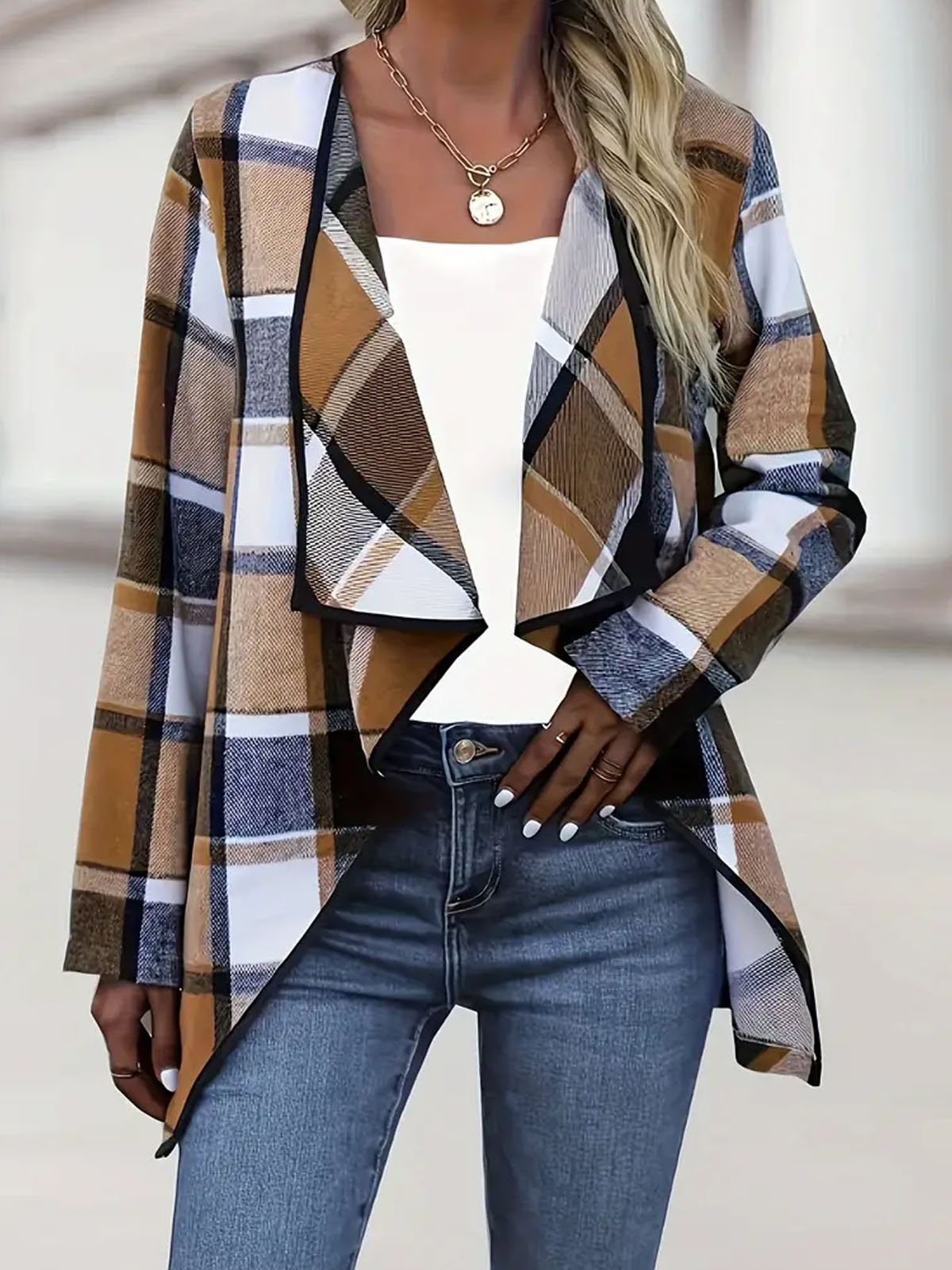 Loose Long Sleeve Plaid Casual Regular Jacket
