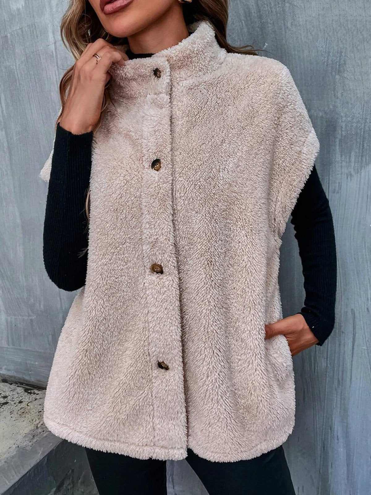 Loose Stand Collar Cap Sleeve Plain Casual Regular Jacket