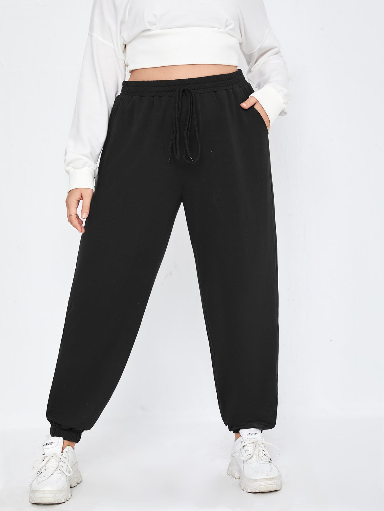 Plain Drawstring High Waist Long Plus Size Sweatpants