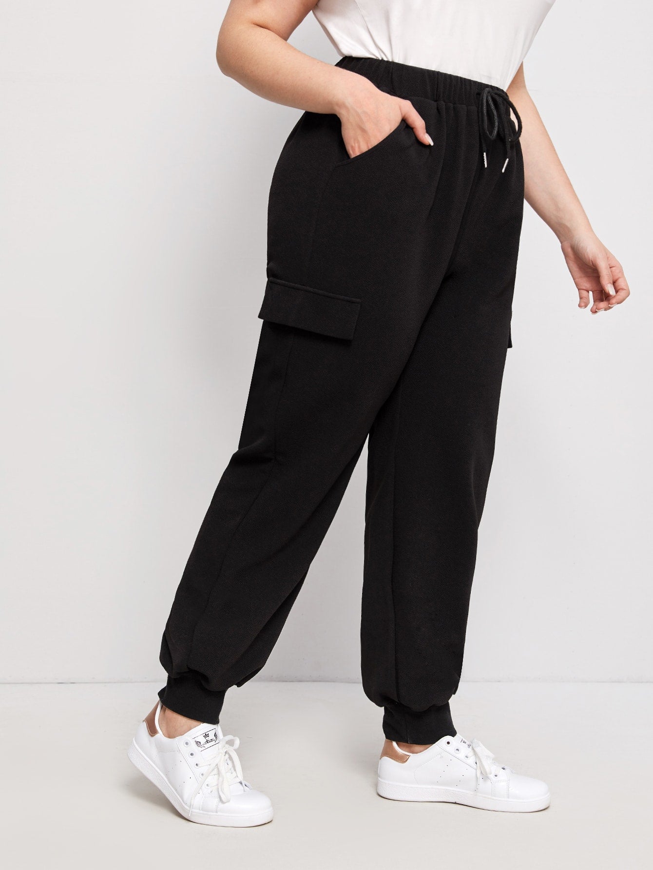 Plain Drawstring Long Plus Size Sweatpants