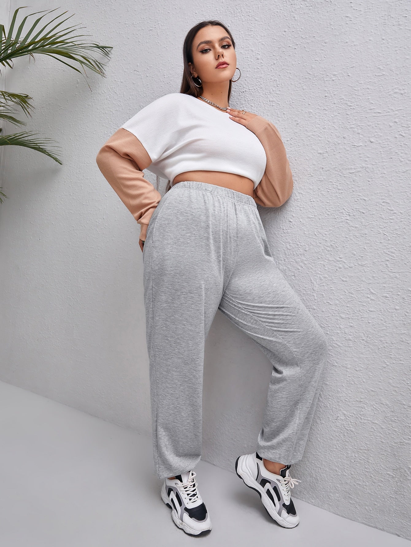Plain High Waist Long Plus Size Sweatpants