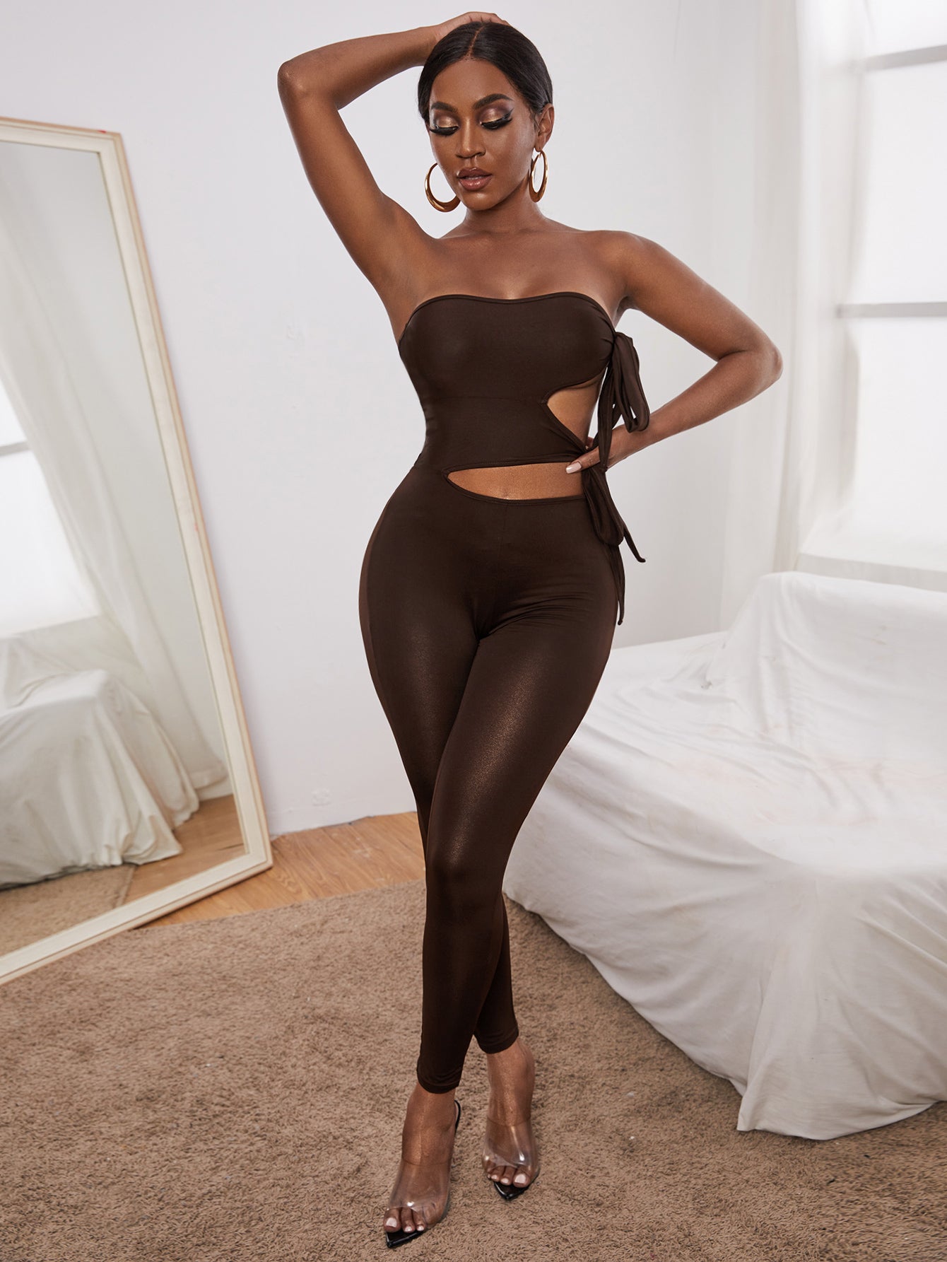 Plain Knot Sleeveless Strapless Long Women Unitards