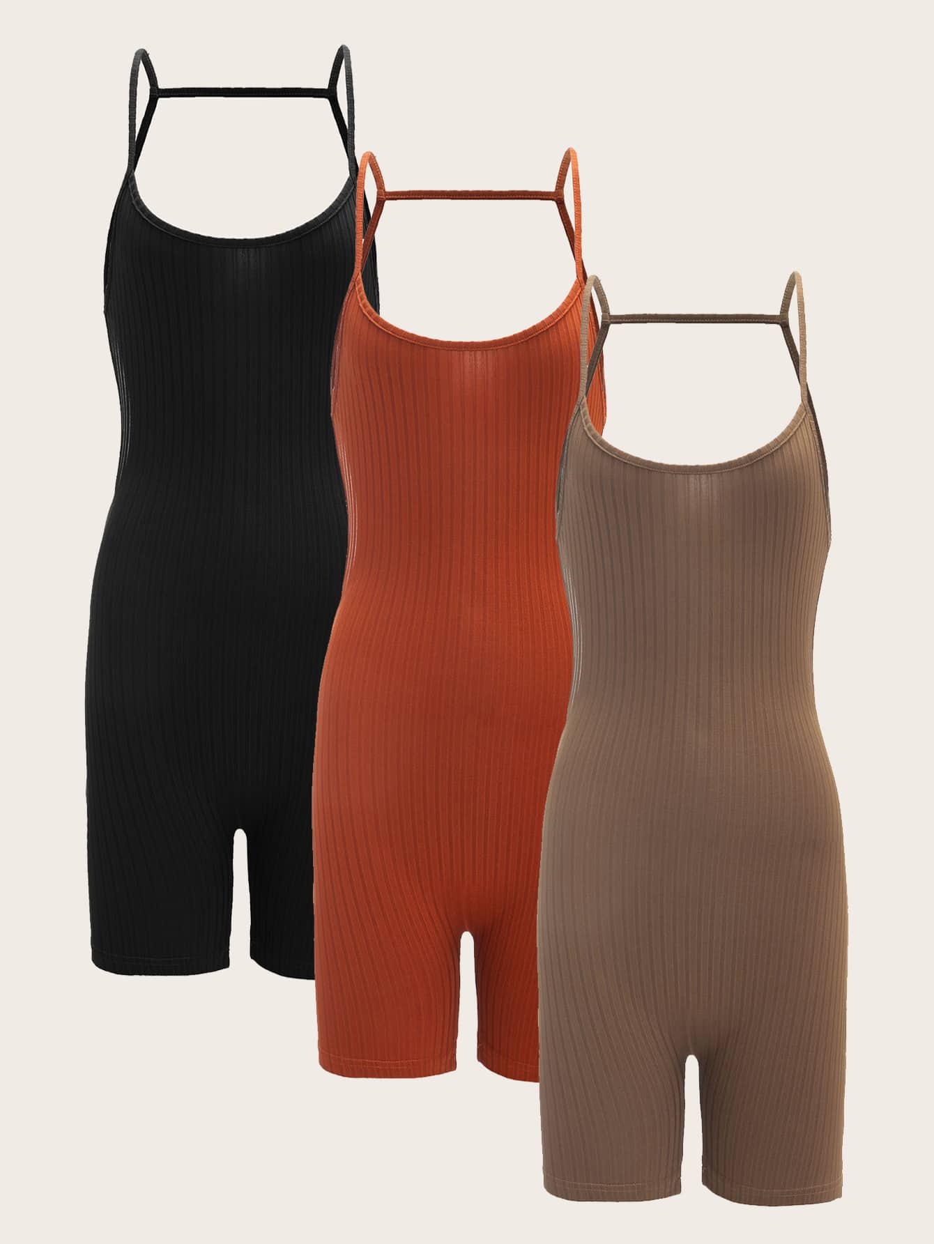 Plain Rib-Knit Sleeveless Straps Short Women Unitards