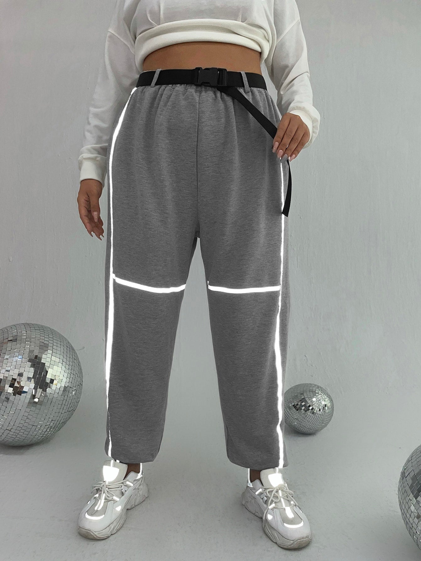 Striped Contrast Binding High Waist Long Plus Size Sweatpants