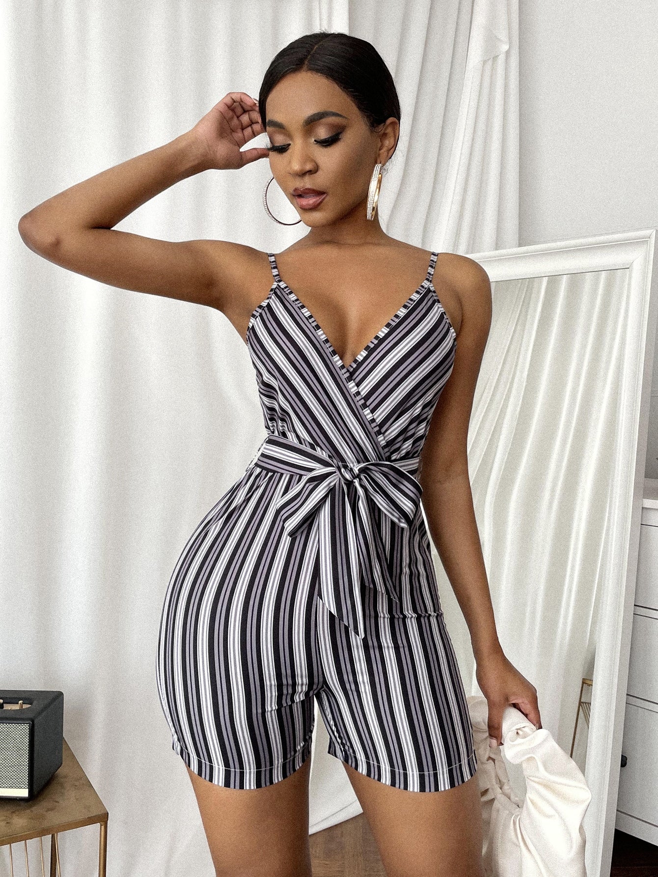 Striped Wrap Sleeveless Spaghetti Strap Short Women Unitards