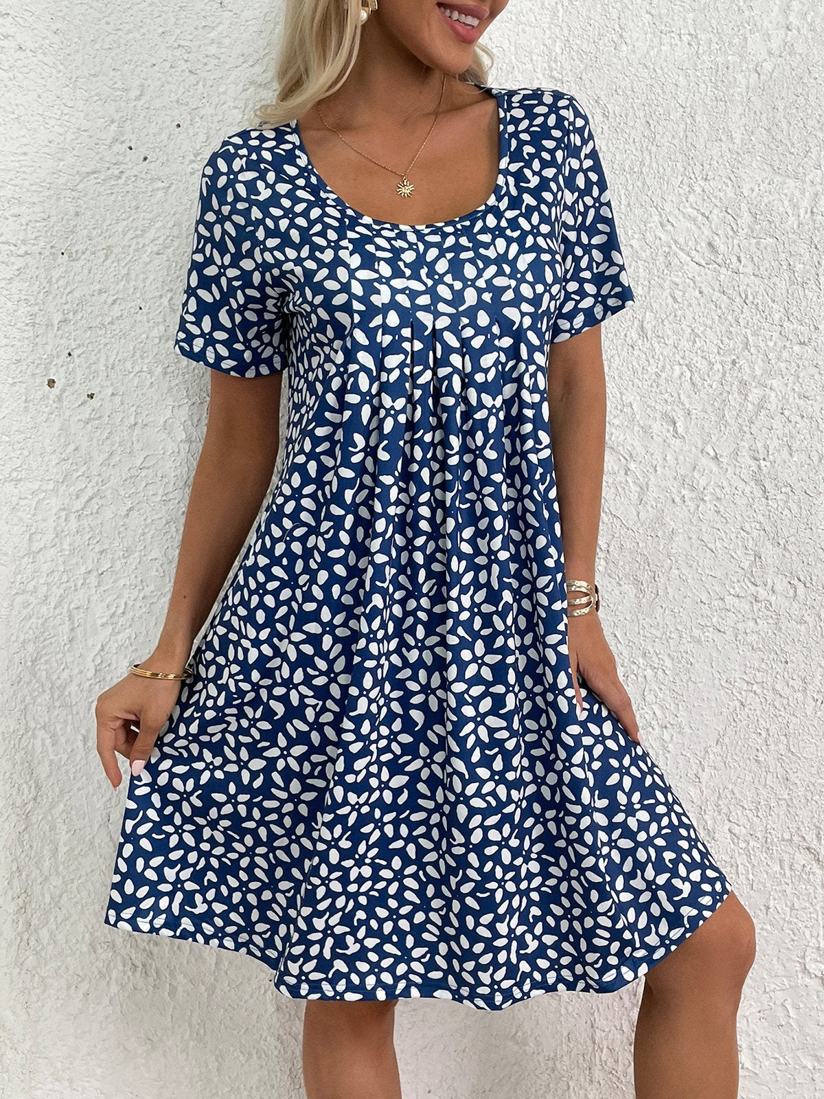 Vacation Short Sleeve Crew Neck Disty Floral Loose Short Dress