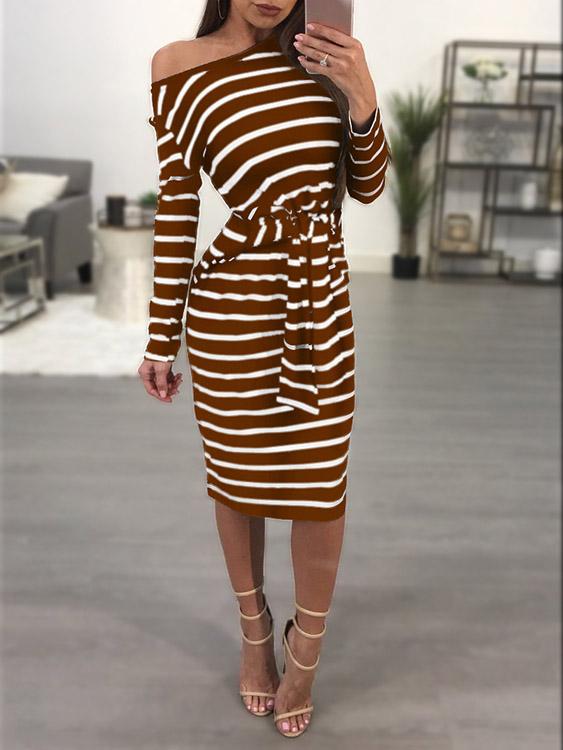 Groothandel Asimmetriese Eenskouer Langmou Streep Midi-rok