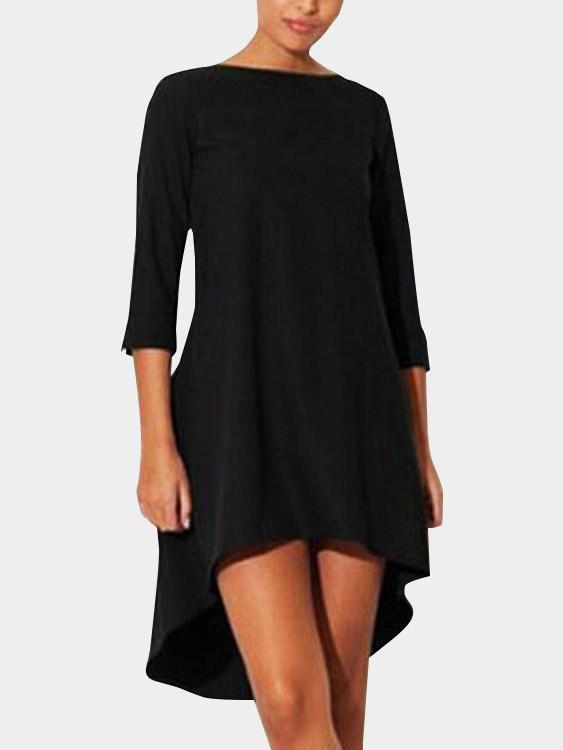 Groothandel Swart Bateau Halfmou Plain Onreëlmatige Soom Midi-rok