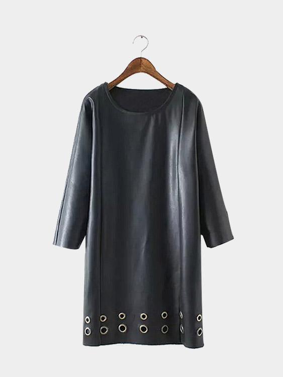 Groothandel Swart Ronde Nek 3/4 Lengte Mou Gewone Midi-rok
