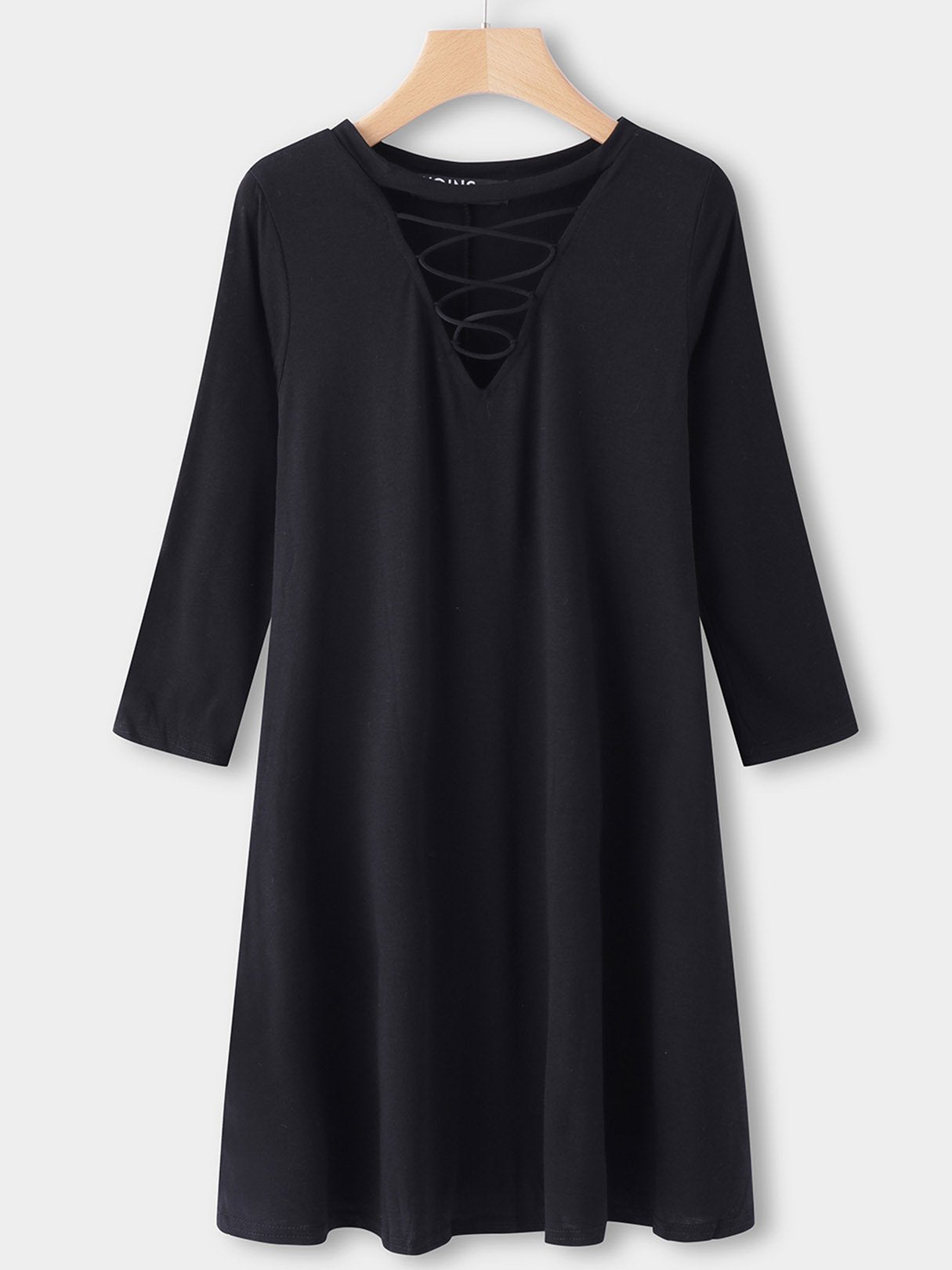 Groothandel Swart ronde nek 3/4 moulengte Gewone sysakke Midi-rok