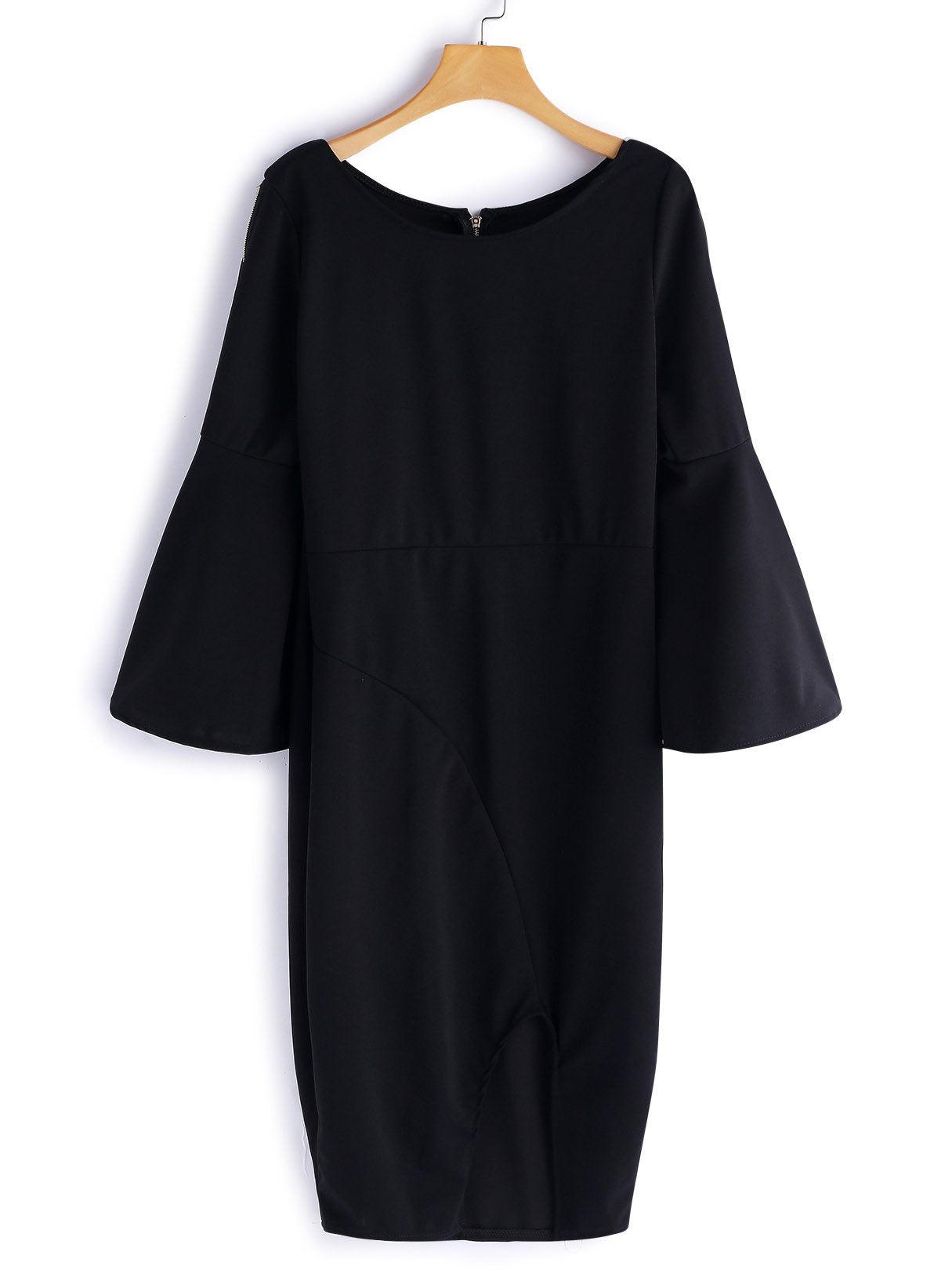 Groothandel Swart Ronde Nek Gewone Rits Terug Slyt Soom Midi-rok