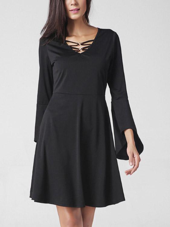 Groothandel Swart V-nek Langmou Plain Lace-Up Midi-rok