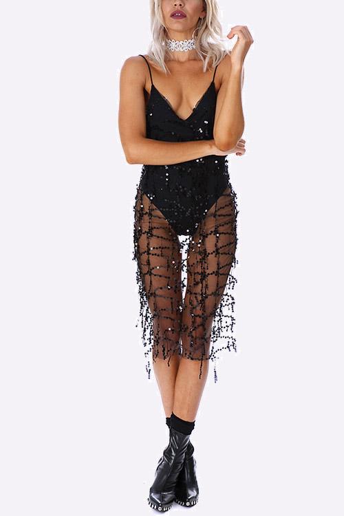 Groothandel Swart V-nek Moulose Tossie Ruglose spleetsoom Midi-rok