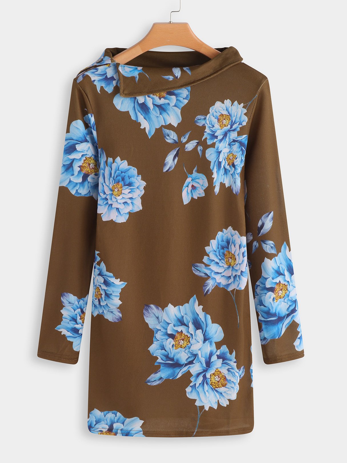 Groothandel Bruin Langmou Blomme Druk hemp rok