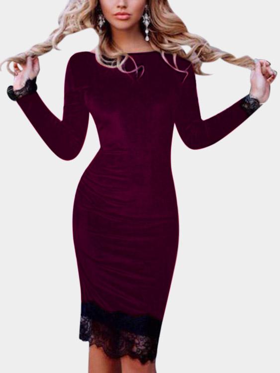 Groothandel Burgundy Bateau Langmou Kantstiksel Soom Midi-rok