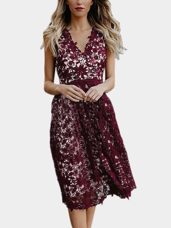 Groothandel Burgundy Mouwlose Kant Midi-rok