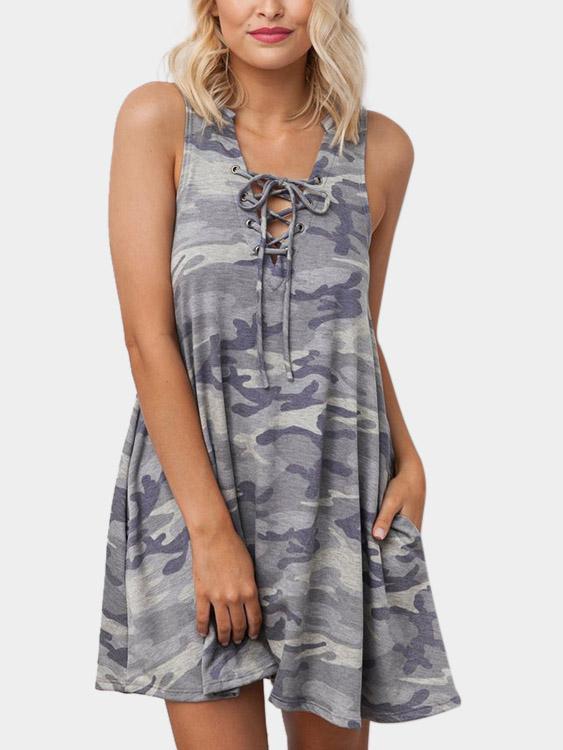 Groothandel Camo V-nek Mouwlose Camouflage Lace-Up rok