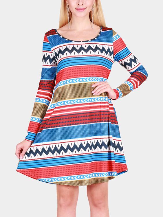 Groothandel gemaklik ronde nek langmou geometriese rokke