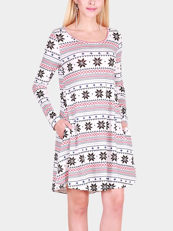 Groothandel geometriese ronde nek langmou gemaklike rokke