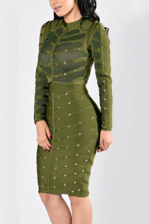 Groothandel Groen Crew Neck Langmou Midi-rok