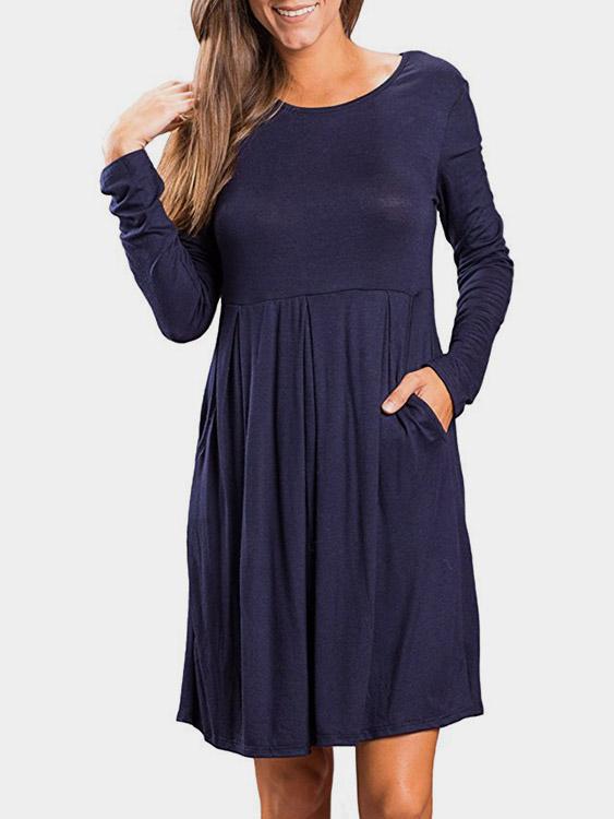 Groothandel Navy Ronde Nek Langmou Ruffle Soom Toevallige rokke