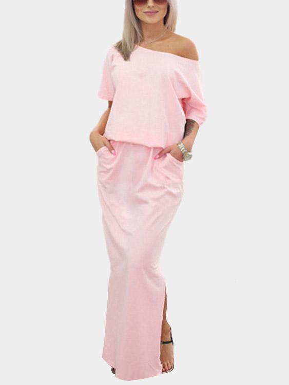Groothandel Eenskouer-kantsakke Kortmou-spleetsoom Pienk gemaklike rokke