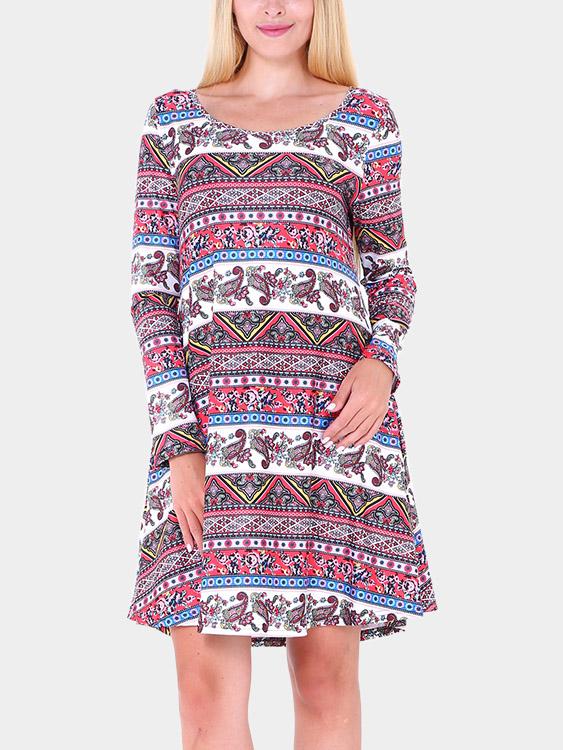 Groothandel ronde nek geometriese langmou gemaklike rokke