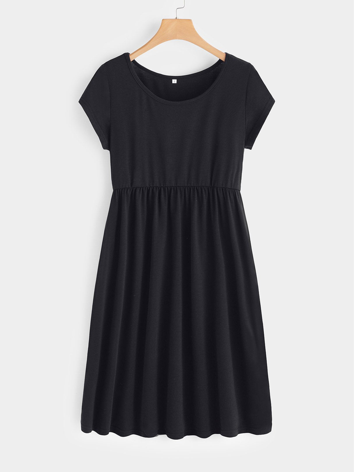 Groothandel Ronde Nek Plain Kortmou Midi-rok