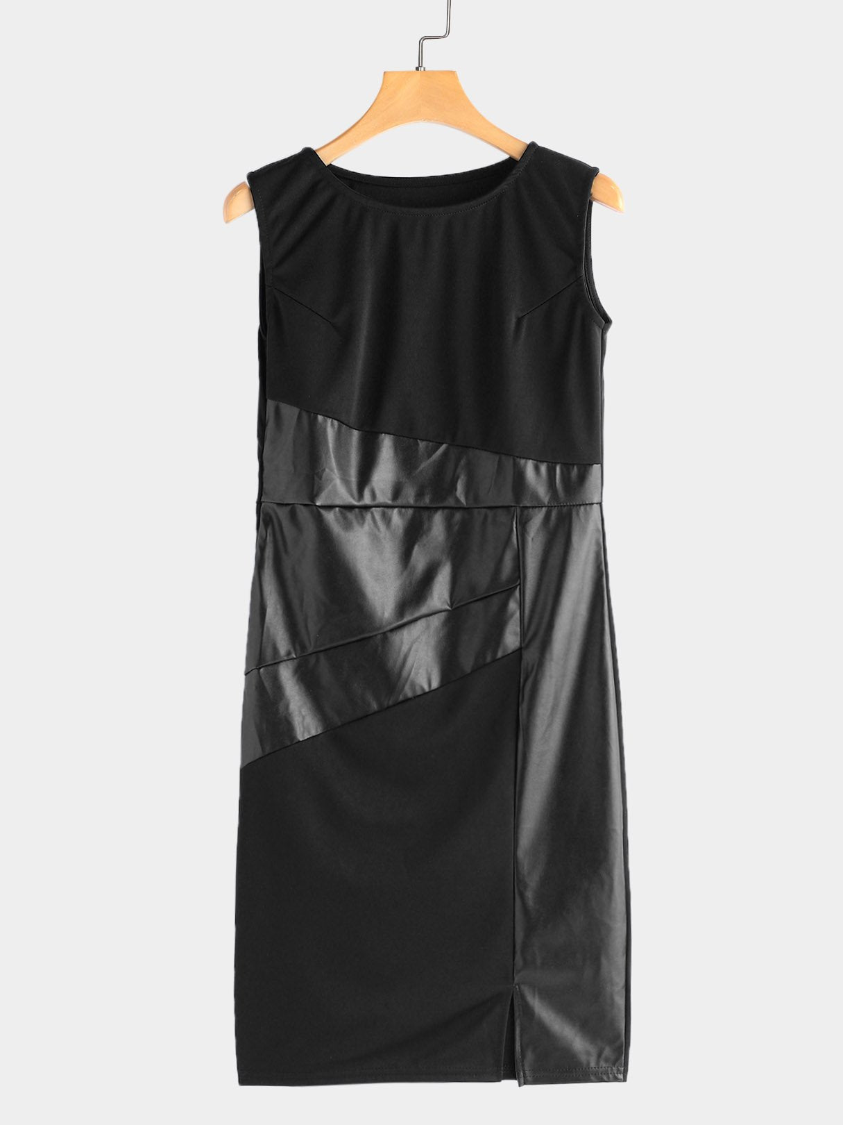 Groothandel ronde nek, moulose spleetsoom, swart midi-rok