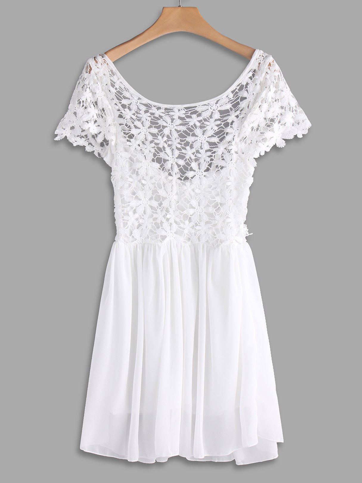 Groothandel wit ronde nek kortmou gewone kant rits terug ruglose midi rok