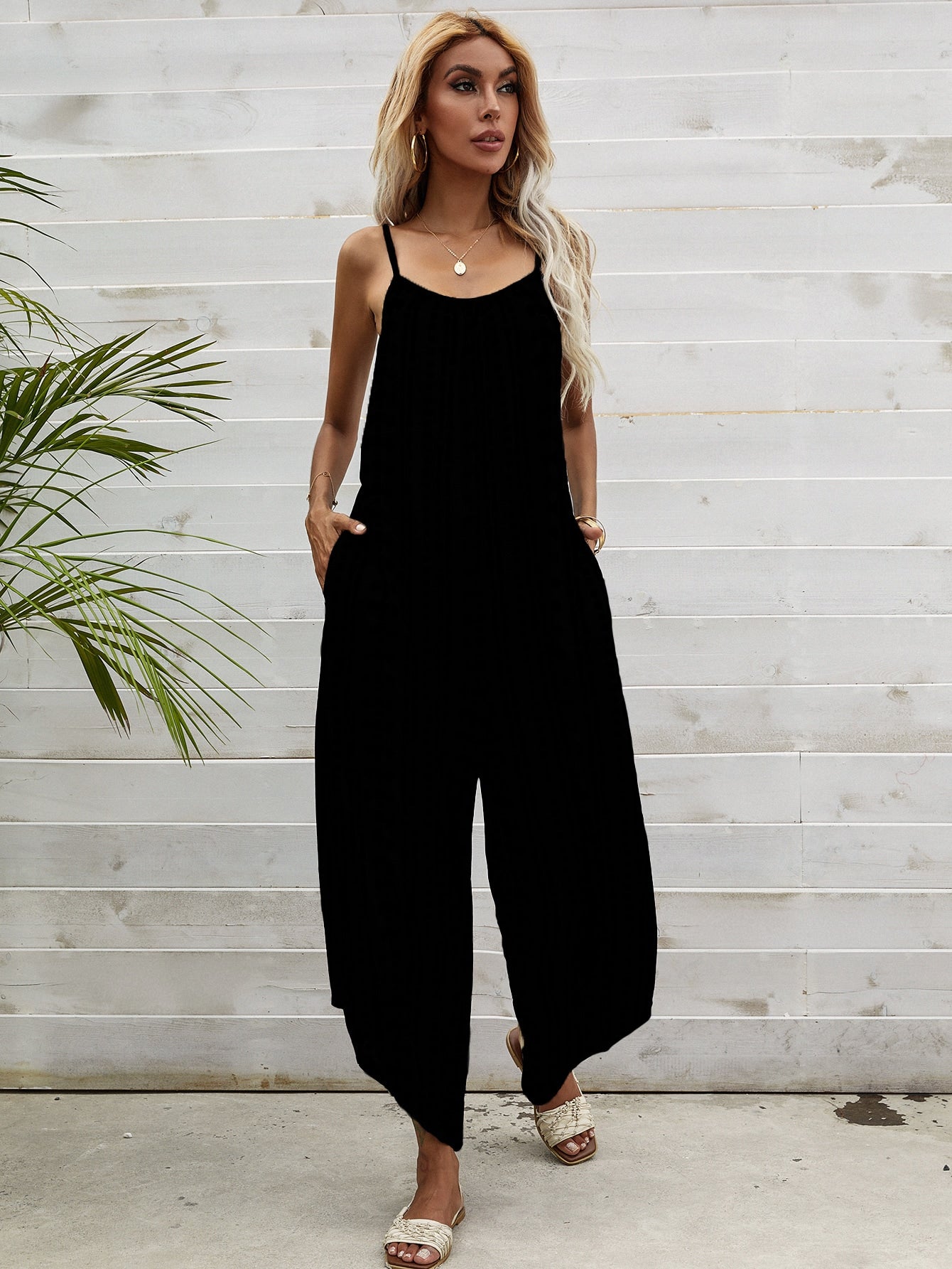 Boho Tribal Pocket Sleeveless Spaghetti Strap Natural Long Women Jumpsuit