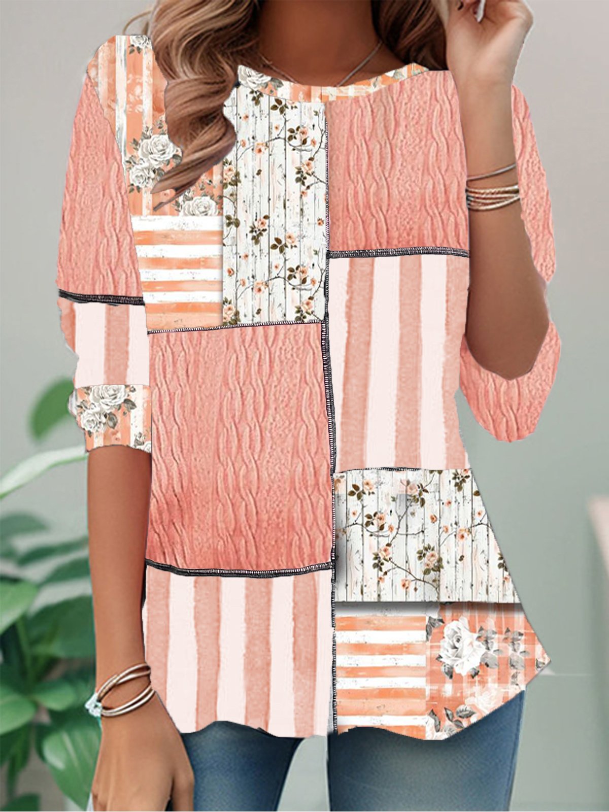 Casual Long Sleeve Crew Neck Floral Loose Regular T-Shirt