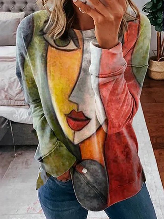 Casual Long Sleeve Hoodie Face Zipper Loose Regular Sweatshirt
