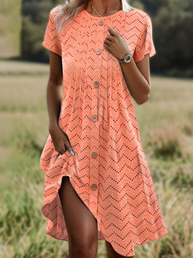 Casual Short Sleeve Crew Neck Plain Loose Midi Dress