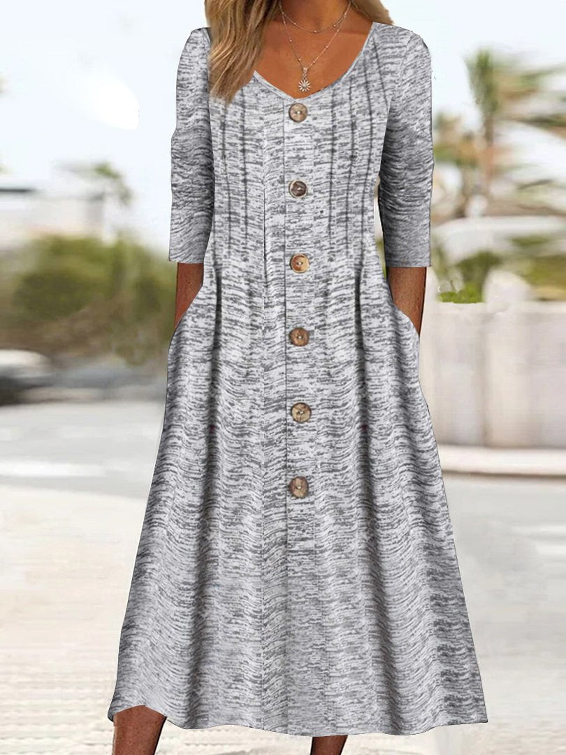 Casual Three Quarter Sleeve V Neck Plain Midi Dress
