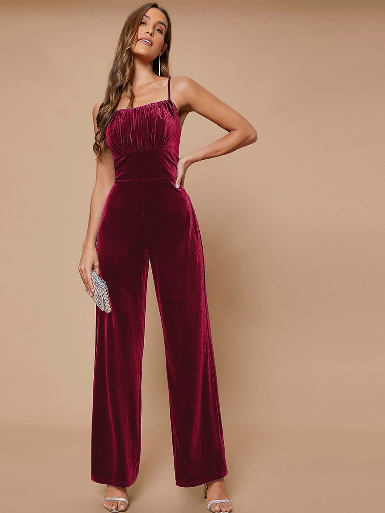 Glamorous Plain Ruched Bust Sleeveless Spaghetti Strap High Waist Long Women Jumpsuit
